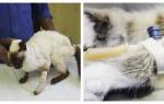 слабость, потеря аппетита, тошнота, рвота, отеки, кожные покровы — сухие, бледно-желтые. Резко, иногда до нуля, снижается диурез. На поздних стадиях развивается сердечная недостаточность, отек легких, склонность к кровотечениям, энцефалопатия, уремическая кома. Показаны гемодиализ и пересадка почки.